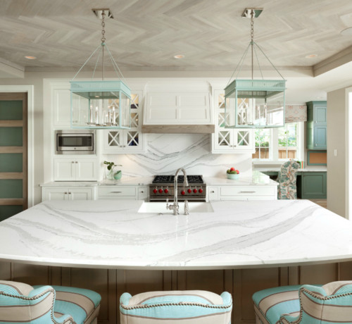 Cambria Full Height Backsplash / In the kitchen it has created a cohesive design throughout the space.